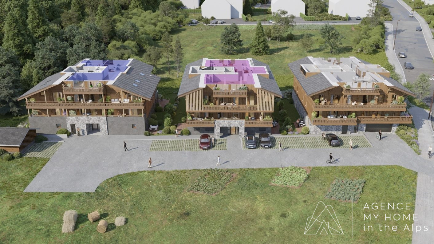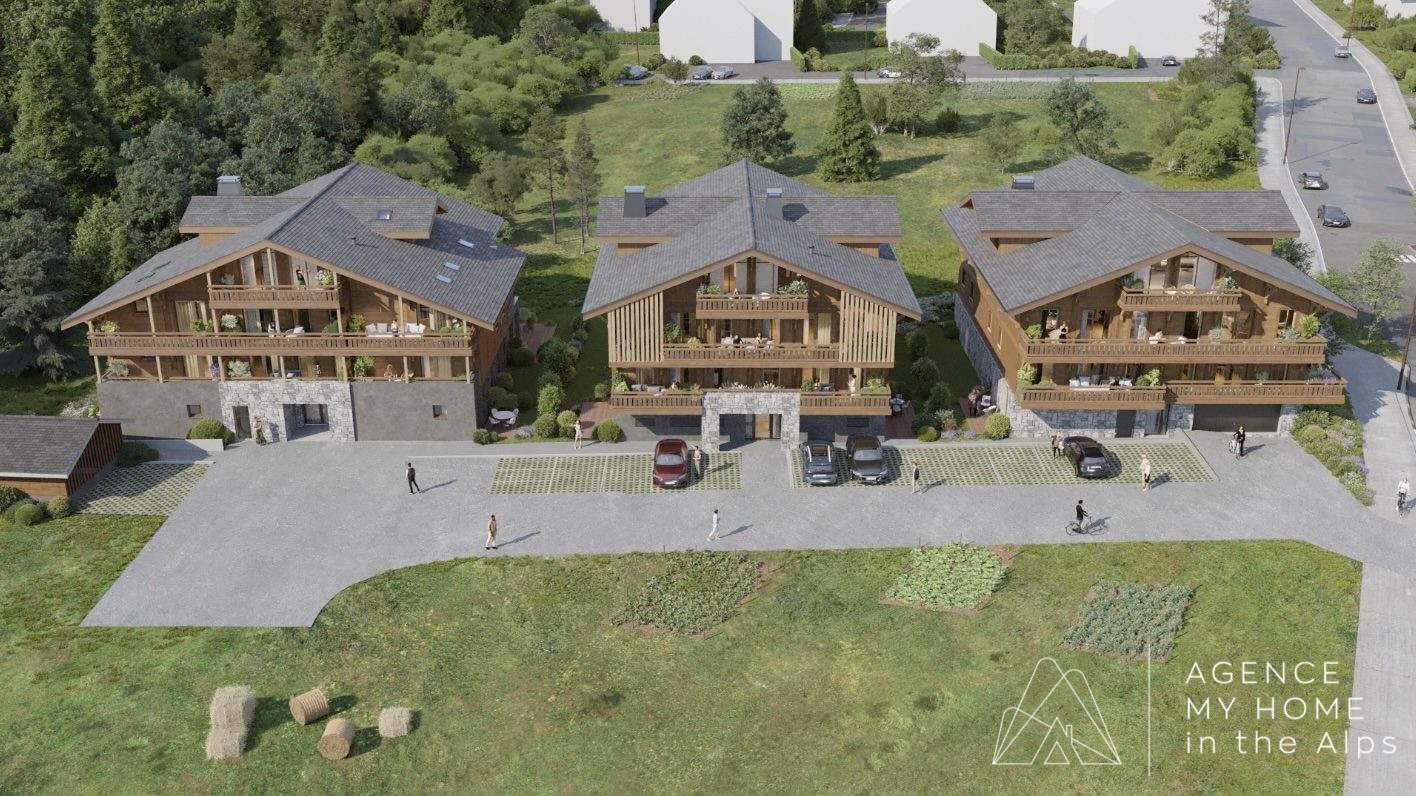 Le Kairn is a new project in a very desirable area of Montriond, on the flat, sunny part with great access up to Ardent and Lake Montriond by the free bus. There will be a total of 31 apartments in 3 buildings. This apartment is a particular favourite as it has 3 bedrooms, it will be a very bright space and it will be a possibility to install a log burning stove (at the buyers cost).